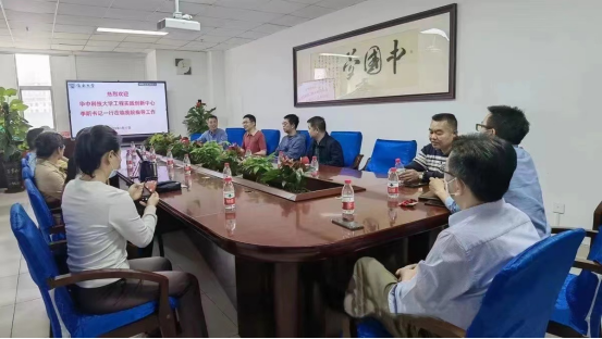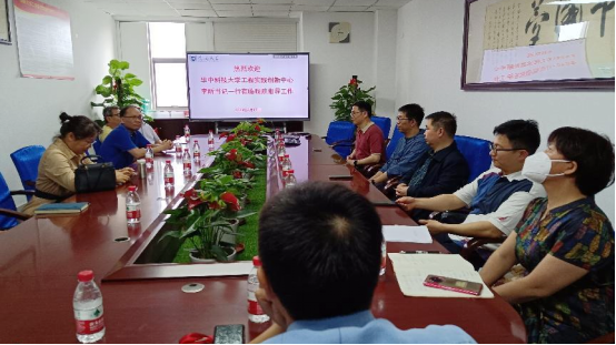 2023年3月17日下午,华中科技大学工程实践创新中心直属党支部李昕书记、启明学院双创办公室詹必胜主任一行4人莅临我院参观交流,座谈会在研发楼417会议室举行。yl7703永利实验室主任梁栋及全体实验人员参加,陈振斌副院长主持会议。