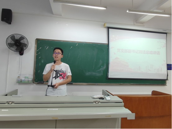 会议的最后,党支部副书记刘洁发表讲话。刘洁同志首先对封礼荣同志分享的经验进行了肯定,并提醒在座的大三党员们及时做好人生规划,明确未来道路,在继续学习与毕业工作之间做出抉择。同时,他通过分享自己计划选调的经历,向在场的党员强调了学历的重要性,勉励在场的党员同学努力学习,积极进取。刘洁同志向党员同学们提出了自己的期盼,并向考研的党员同学们发出祝福,祝愿他们考研顺利,成功上岸。