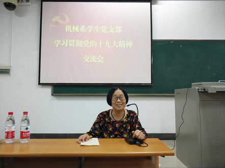 2017年11月7日下午,yl7703永利机械系学生党支部于4-211召开了“学习贯彻党的十九大精神报告会”。红军后代罗曼阿姨、学院党委委员廖宇兰老师、支部书记崔建兵老师出席参加,机械系学生党支部全体党员、发展对象、积极分子参加了报告会。会议由支部组织委员廖宇轩主持。