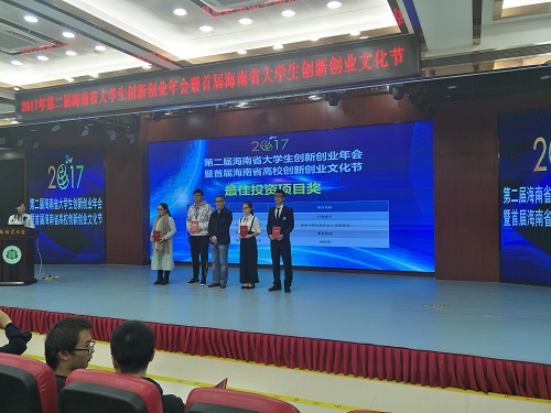 此次年会,我院学子李伟,唐政,汪东升等人凭借“开椰壹号”项目获得了“最佳投资创业项目奖”,并获得在年会报告闭幕式上进行项目展示的机会;同时,我院学子翟好宇,赵晨,时强胜的“开椰宝”项目获得最受欢迎展示项目奖项。