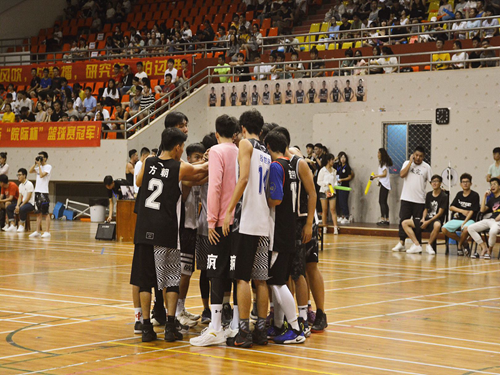 后半场我方球员重新调整状态,全力出击,越战越勇,逼得研究生队连犯三次规而请求暂停,我院也实现比分的反超。比赛再次开始,研究生队调整战术,打出配合拉近比分。我方球员没有慌乱,稳住阵脚,组织有效的反攻。时间一分一秒的过去。当比赛结束的哨声响起时,全场沸腾。