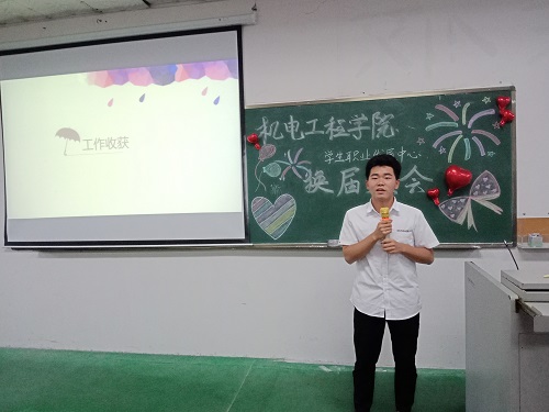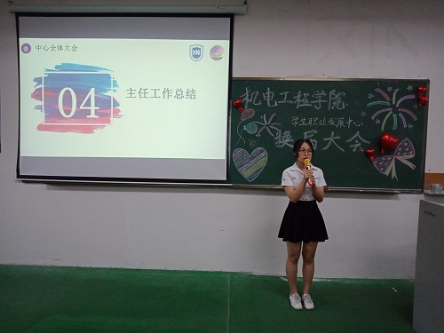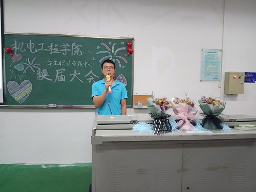 六月淅沥,盛夏缤纷。2019年6月16日下午两点半,机电学生职业发展中心全体大会暨换届大会在1-202教室圆满举行。学工办主任崔建兵老师出席,中心全体学生干部参加。对外关系部李晓雨主持本次大会。