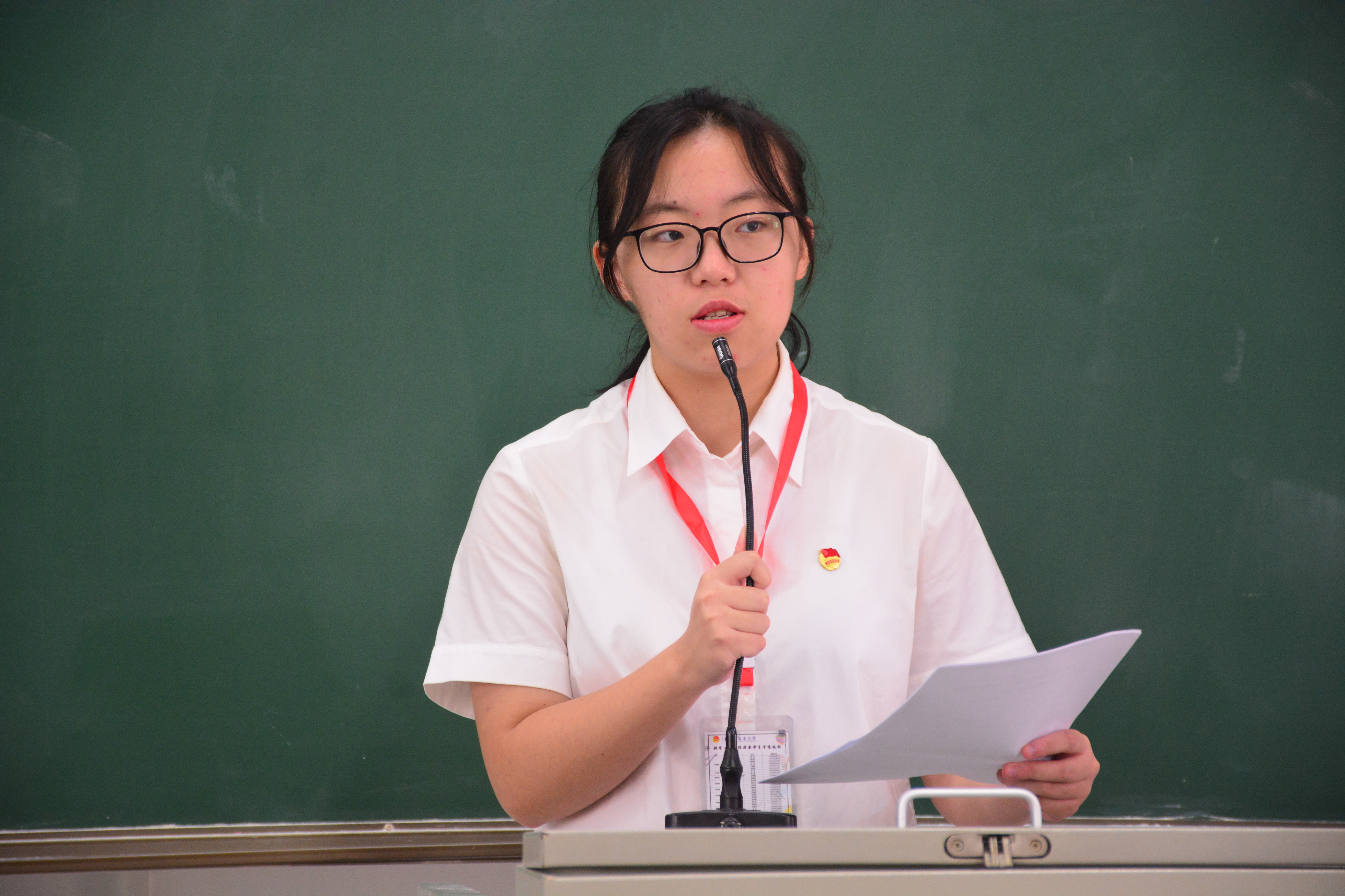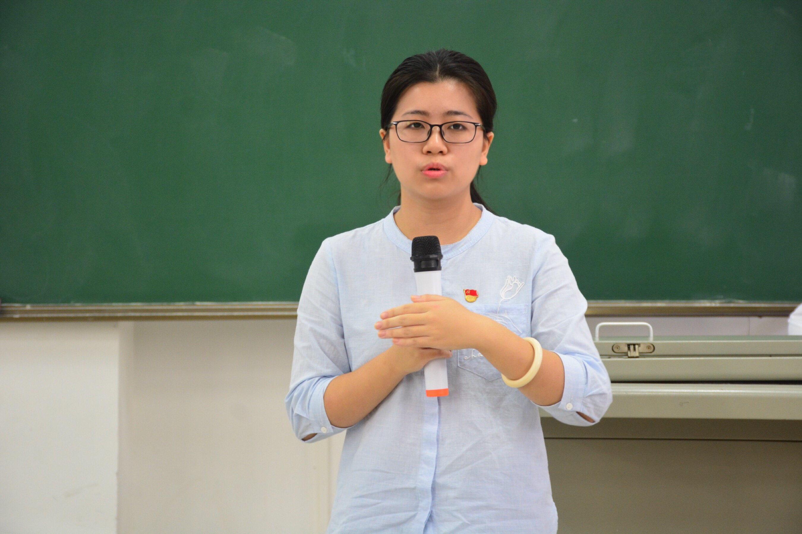 开营仪式第四项,yl7703永利团委学生会副书记黄已倩发言。她首先介绍了近年来学院的光辉历史。此后,她从大一新生的新生孵化活动到学院的开学典礼再到今天的干事培训大会,介绍了本学期以来学院团委学生会组织的各项活动。她也向在座的学院领导和学生干部们保证,团委学生会各个部门会通力合作,为学院工作顺利开展保驾护航。