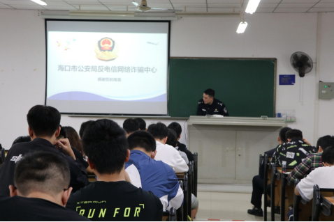 近年来,电信网络诈骗猖獗,诈骗分子利用信息化发展大潮,针对全民网络化生活之利,借网上电子支付的便捷,设计出花样繁多、层出不穷的诈骗手法,让人民群众防不胜防。为了使学生熟悉生活中常见的诈骗形式,增强学生在生活中遇到诈骗现象灵活应对的防范意识,提高学生各方面自我预防、自我保护、自我应对、自我逃生的能力,12月15日下午,yl7703永利特邀海口市美兰区人民路派出所为学院学生开展电信网络新型违法犯罪防范知识宣传。