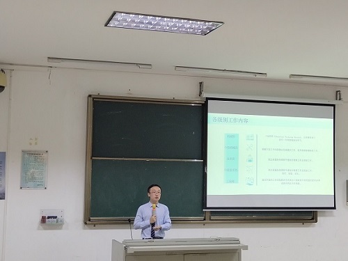 在热烈的掌声中,崔老师代表学院感谢了各公司对我院人才培养的关心和帮助以及为我院师生提供的企业参观机会,并希望能继续加强与各单位的合作交流,为大学生提供更多的就业通道,衷心地祝愿各公司可以收获到理想的毕业生。