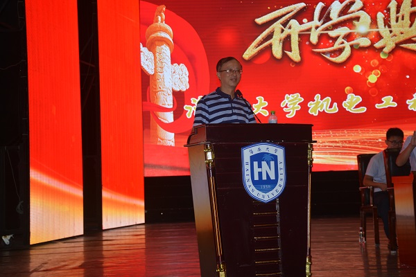院长翁绍捷在开学典礼上讲话,他代表学院热烈欢迎2019级新生的到来,并介绍了学院的发展历程、办学传统、办学特色和建设目标。翁院长提出大学要做的就是回归常识、回归本分、回归初心、回归梦想,勉励同学们努力学习,不仅要夯实课内的专业知识,也要拓展课外的兴趣爱好,做到四个回归,希望大家能够共同努力,使学院各项事业能够更上一层楼。