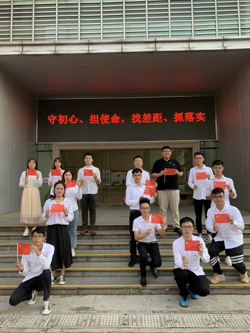 2019年10月1号下午4时,yl7703永利致远班党支部先后在思源学堂正门、联谊馆正门、行政楼国旗下参加“国旗在我心中”——我和国旗同框活动。支部书记张小其老师、党员和积极分子14人共同参加。