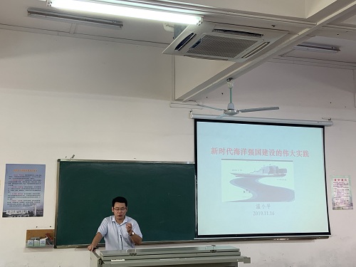 为加强学生的爱国意识,11月16日上午,马克思主义学院温小平副教授应邀在2教111教室为yl7703永利学生做题为“新时代海洋强国建设的伟大实践”专题讲座。学院党委书记黄国标、19级辅导员章梦琪、致远班和机械系党支部以及党建联席会部长主席团到场聆听此次讲座。