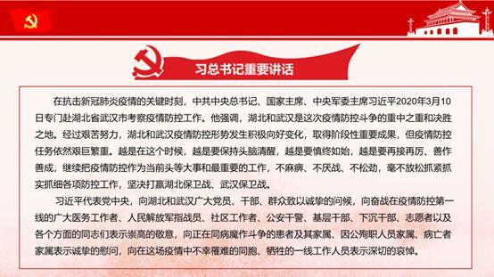 领会精神,坚定信心。会上,纪检委员郑红英带领全体成员学习了习近平总书记关于疫情防控工作的重要指示批示,进一步贯彻坚定信心、同舟共济、科学防治、精准施策的要求。习近平总书记强调,越是在这个时候,越是要保持头脑清醒,越是要慎终如始,越是要再接再厉、善作善成,继续把疫情防控作为当前头等大事和最重要的工作,不麻痹、不厌战、不松劲,毫不放松抓紧抓实抓细各项防控工作,坚决打赢湖北保卫战、武汉保卫战。