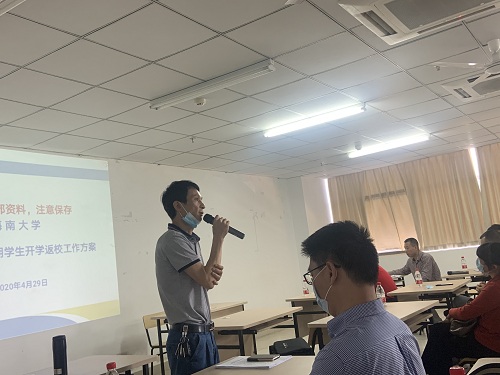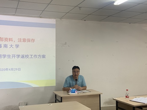 会上,唐院长向与会人员传达《海南大学关于2020年春季学期学生返校的通知》的相关精神,指出学生返校是对学校疫情防控整体工作的一次巨大考验,全院教师要提高政治站位,加强责任意识,进一步细化、优化开学工作方案,本着学生第一、安全第一的原则,确保学校疫情防控和返校工作每个环节责任落实到位。