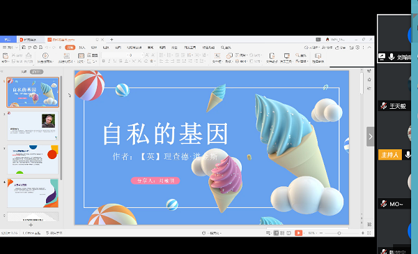 刘瑜明同学与大家分享的是理查德·道金斯所作的《自私的基因》。这是一部科普读物,理查德·道金斯用一种真实而略恐怖的手法在书中描写了人与动物的区分。刘瑜明同学给大家举了书中鼹鼠的例子,认为作者对人与动物区别的反思,实际上是对人类文明的肯定。他讲到在五四青年节到来之际“五四精神”的传承问题,刘瑜明同学将自己的读后感与时事结合,获得了大家的“点赞”。
