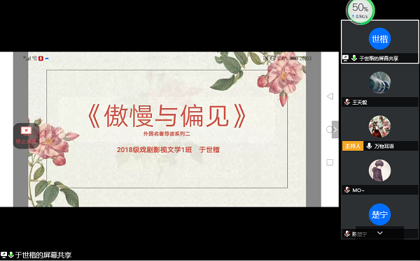 “人心如良苗,得养乃滋长。苗以泉水灌,心以理义养。一日不读书,胸臆无佳想。一月不读书,耳目失清爽。”受到疫情影响,拥有读书兴趣的同学们暂时无法相聚在校园,但他们对读书的热情不减,彼此之间因书籍而建立起的美好联系没有因距离而疏远。恰逢五四青年节前夕,正所谓“以书养志”,读书是青年人生活的重要组成部分,分享读书心得也是分享青春。为鼓励同学们积极阅读并分享自己的读书感悟,5月2日晚上8点,yl7703永利理论宣讲团和人文传播学院团委学生会共同举办的“悦读者”读书分享会在线上准时召开。