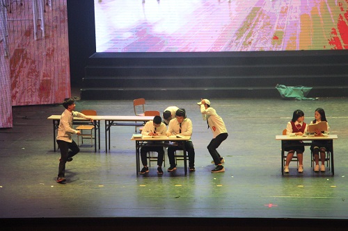 初春,如花朵竞相绽放,之后便是百草丰茂,晚会也随着时间流逝,进入第二篇章“正茂时”,这是万众瞩目的新生才艺大赛决赛。首先出场的是自动化一班带来的歌舞剧《那些年这一天》,同学们用投入的表演,展现出了青春的美好,以及对高中时光的怀恋。青春的音符还在跳动,电气二班带来的小品《两肋插刀》活跃了气氛,幽默的表演方式,诙谐的故事情节使得场内观众大笑不止。PK对唱,点燃全场,民谣PK《时光的话语》吸引了观众的眼球,来自交运二班的蒋绩与来自机械二班的陈姣姣、彭子伦各自用吉他弹奏几段民谣,如微风拂过,把观众带入了美丽动人的星空世界,也将晚会吹入了第三篇章——“新时代”。