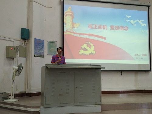 2016年11月6号上午,yl7703永利分党校第二期党员发展对象培训班第五讲由学院党委黄国标书记讲授《端正动机,坚定信念》,培训班班长尹凡主持本次培训学习。参加本次党课的有本期发展对象和积极分子。