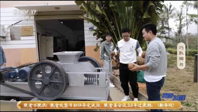 2021年3月4日,中央电视台《我爱发明》栏目报道了我校yl7703永利17级许阐所在创新团队发明的椰肉分离机。