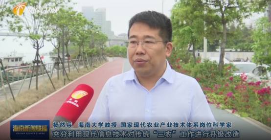 2022年3月29日杨然兵教授应海南新闻联播邀请,接受海南广播电视总台采访,针对“海南:智慧三农 激发乡村振兴‘新活力’”问题,杨教授提出在互联网时代背景下需树立互联网"三农+"的理念思路,充分利用现代信息技术对传统“三农”工作进行升级改造,推动智慧三农建设;针对目前海南农业发展现状,指出利用农业院校的人才储备和科技成果为动力,推进数字乡村建设,是实现脱贫助农与乡村振兴的重要途径。