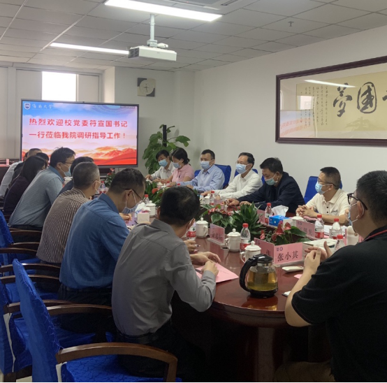 4月8日上午,校党委书记符宣国一行到我院调研指导工作并座谈交流,党委常委、副校长胡新文,党委常委、纪委书记郑尉杰,党委常委、统战部部长陈明宝陪同,教务处、基建处等职能部门主要负责人参与。