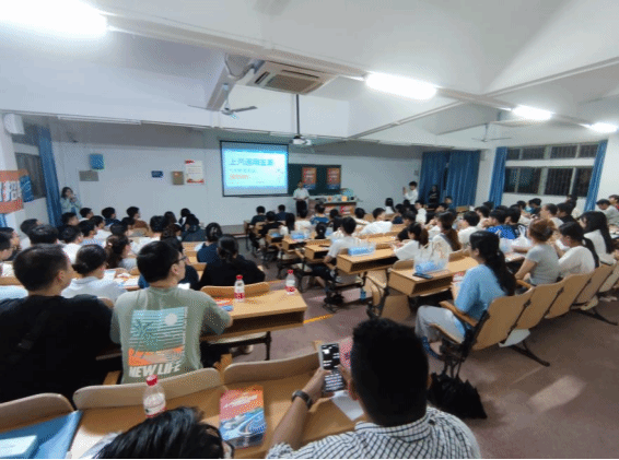 9月25日晚,上汽通用五菱汽车股份有限公司(以下简称“上汽通用五菱”)2024校园招聘宣讲会在二教2-110顺利举行。上汽通用五菱海南线校园招聘经理陈志根、招聘运营师张洋、新产品质量经理罗晓宁以及有就业意愿的同学参与本次活动。