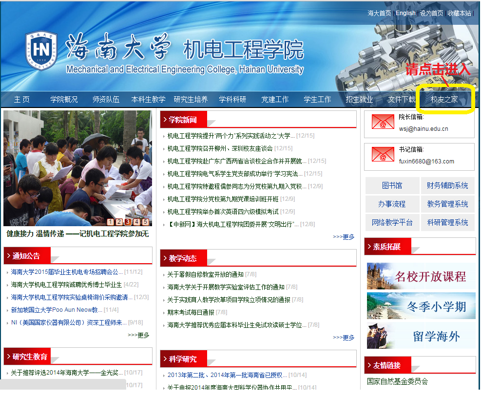 一、登录yl7703永利主页:http://www.hainanu.edu.cn/jidian/;点击网页上方右端的“校友之家”栏目。